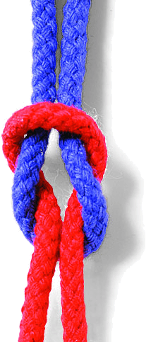 平结:一种普通的双结,其松弛的端点与立杆平行,最常用于连结两根线或绳的端点