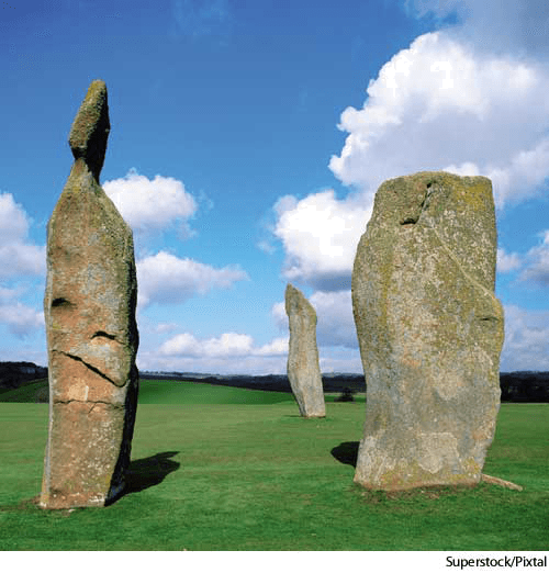 standing stonen.(名词) standing stoneon the second fairway at Lundin Ladies Golf ClubFife, Scotland- A prehistoric monument of a class found chiefly in the British Isles and northern France, consisting of a single tall, upright megalith. Also called menhir 巨石柱:史前期遗下的巨石柱,主要在英格兰岛以及法国北部,有独立高耸的巨石 也作 menhir