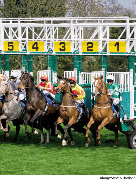 starting gaten.Sports(名词)【体育运动】 starting gate- A series of stalls with interconnected doors that open simultaneously at the beginning of a race.起跑门:内部有相关门的一系列栅栏,在赛跑开始时同时打开