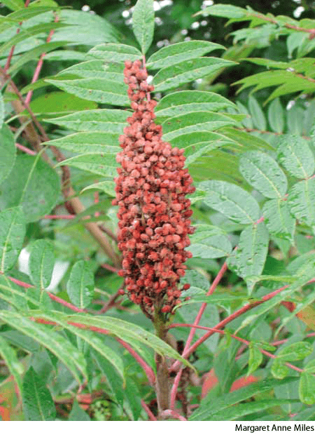 - from Arabic summāq [sumac tree] 源自 阿拉伯语 summāq [盐肤木树]