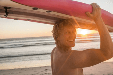 Scott's favorite time to surf is first thing in the morning when the sun is just coming over the horizon.