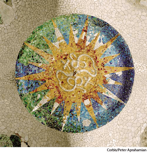 sun·burst AHD[sŭnʹbûrst'] D.J.[ˈsʌnˌbɜːst]K.K.[ˈsʌnˌbɝst]n.(名词) sunburstmosaic design at Palau Güell,by Antoni GaudíBarcelona, Spain- A sudden burst of sunlight, as through broken clouds.阳光乍现:阳光突然出现,如穿过云层的缝隙