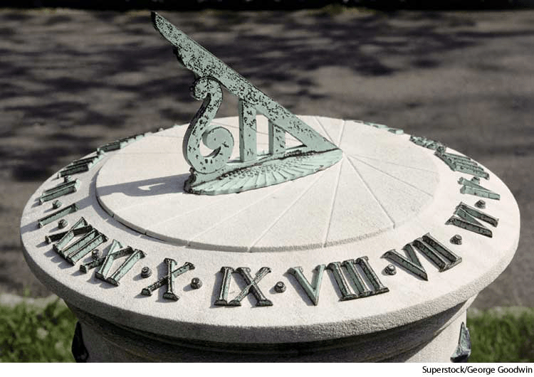 sun·di·al AHD[sŭnʹdī'əl] D.J.[ˈsʌnˌdaɪəl]K.K.[ˈsʌnˌdaɪəl]n.(名词) sundial- An instrument that indicates local apparent solar time by the shadow cast by a central projecting pointer on a surrounding calibrated dial.日晷仪:指示某地太阳时间的一种仪器,通过一个中心突出指针在围绕刻有标准刻度的日晷上的阴影来指示时间