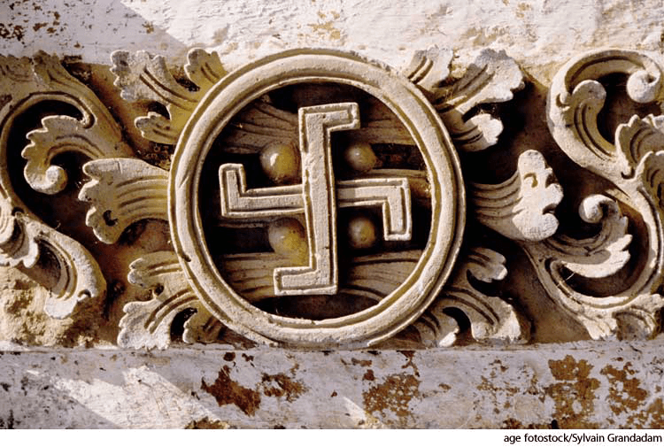 - Sanskrit svastikaḥ [sign of good luck, swastika] 梵文 svastikaḥ [好运的象征,万字饰]