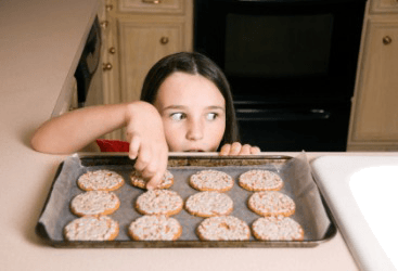 This girl is taking a cookie.