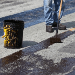 A man spreading hot tar on a road.