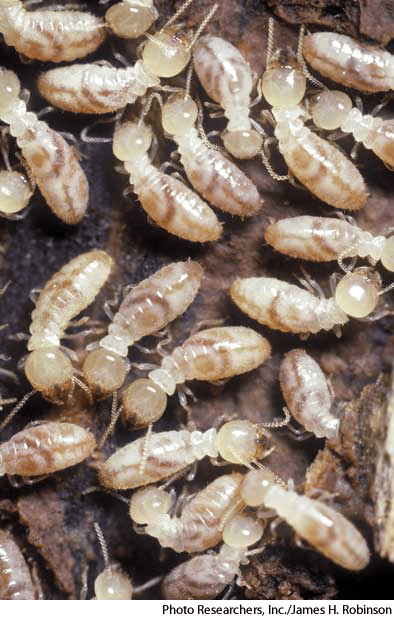 ter·mite AHD[tûrʹmīt'] D.J.[ˈtɜːˌmaɪt]K.K.[ˈtɝˌmaɪt]n.(名词) termiteeastern subterranean termitesReticulitermes flavipes- Any of numerous pale-colored, usually soft-bodied social insects of the order Isoptera that live mostly in warm regions and many species of which feed on wood, often destroying trees and wooden structures. Also called white ant 白蚁:等翅目数量巨大、颜色较浅、通常身体柔软的群居昆虫的任意一种,主要生活在温暖地区,其中许多种类以木材为食,经常破坏树木和木制的物品 也作 white ant