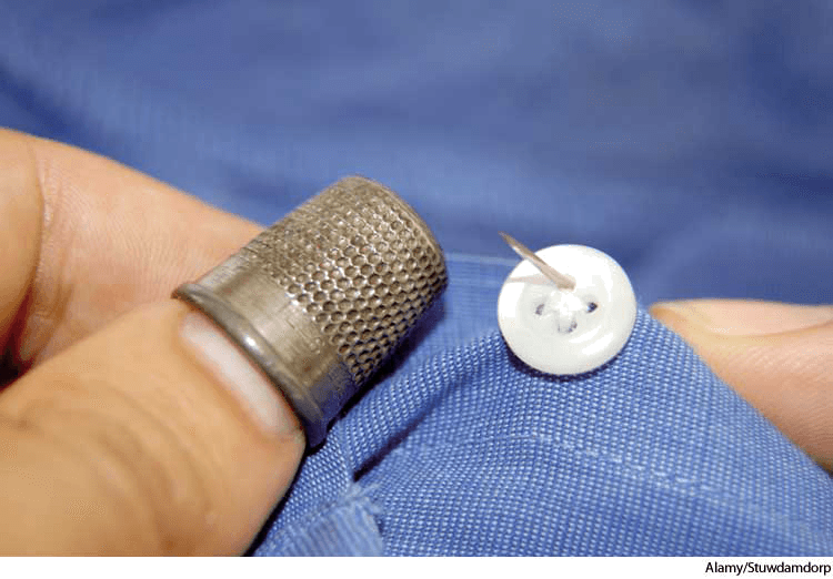 thim·ble AHD[thĭmʹbəl] D.J.[ˈθɪmbəl]K.K.[ˈθɪmbəl]n.(名词) thimbletop: sewing thimblebottom: rope thimble thimble- A small cup made of metal, ceramic, plastic, leather, or other hard material, worn for protection on the finger that pushes the needle in sewing.顶针:用金属、陶瓷、塑料、皮革或其它硬材料制作的小杯状物,缝制时戴在手指上起保护作用