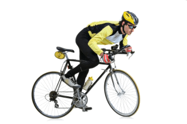 A man riding a bicycle.