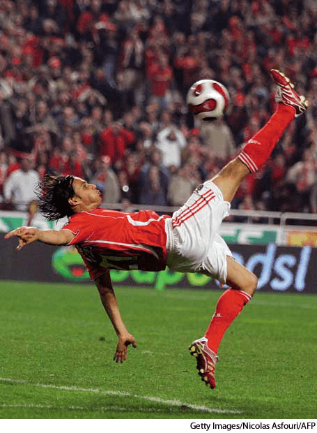 1. A soccer kick in which the player leans far backward and kicks an airborne ball in the direction in which he or she is leaning.骑车式踢球,倒挂金钩:(足球)球员身体后仰,将空中传球朝他或她背对方向踢出