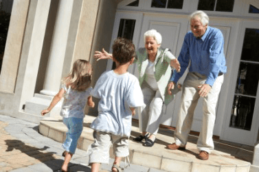 Grandparents thrilled to see their grandchildren.
