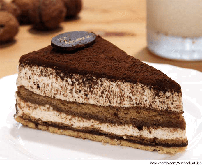 tir·a·mi·su AHD[tîr'ə-mēʹso͞o, -mē-so͞o′] D.J.[ˌtɪərəˈmiːsuː, -miːˈsuː]K.K.[ˌtɪrəˈmisu, -miˈsu]n.(名词) tiramisu- A dessert of cake infused with a liquid such as coffee or rum, layered with a rich cheese filling, and topped with grated chocolate.提拉米苏蛋糕:为混合液状咖啡或甜酒的蛋糕点心,外覆一层浓厚的奶酪料,上层则铺以巧克力碎片