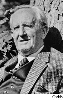 Tol·kien AHD[tōlʹkēn', tŏlʹ-] J(ohn) R(onald) R(euel) (1892-1973) D.J.[ˈtəʊlˌkiːn, ˈtɒl-]K.K.[ˈtolˌkin, ˈtɑl-]NONE(无词性) J.R.R. Tolkien- British philologist and writer of the fantasiesThe Hobbit (1937) and The Lord of the Rings (1954-1955). 托尔金,约(翰)·伦(纳德)·鲁(尔):(1892-1973) 英国语言学家和幻想家,作品有《穴居矮人》 (1937年)和 《行会首领》 (1954-1955年)