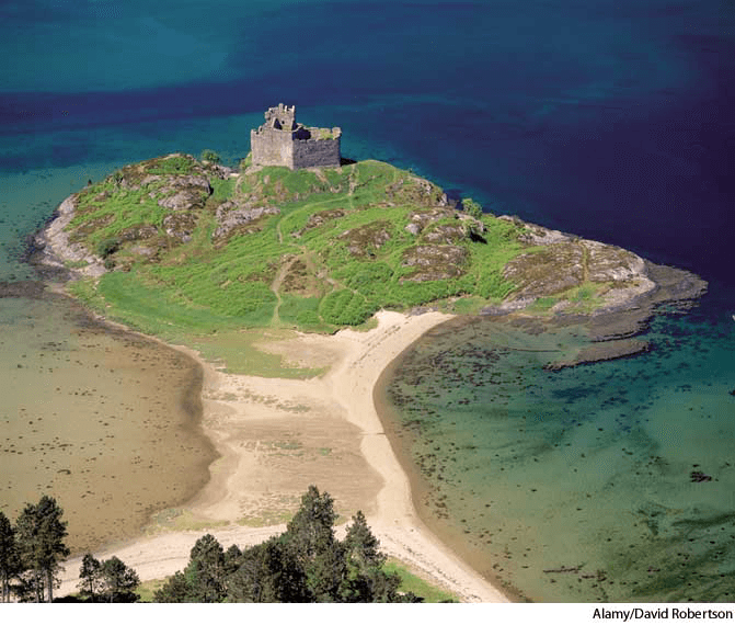 tom·bo·lo AHD[tŏmʹbə-lō'] D.J.[ˈtɒmbəˌləʊ]K.K.[ˈtɑmbəˌlo]n.(名词)【复数】 tom.bo.los  tomboloCastle TioramLoch Moidart, Scotland- A sandbar that connects an island to the mainland or to another island.莎颈岬:连接岛屿和大陆或岛屿与岛屿的长条沙洲