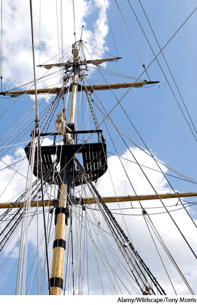 - Nautical A platform enclosing the head of each mast of a sailing ship, to which the topmast rigging is attached.【航海】 桅楼,桅盘:帆船上包围着所有帆头的平台,顶桅索具就加结于其上