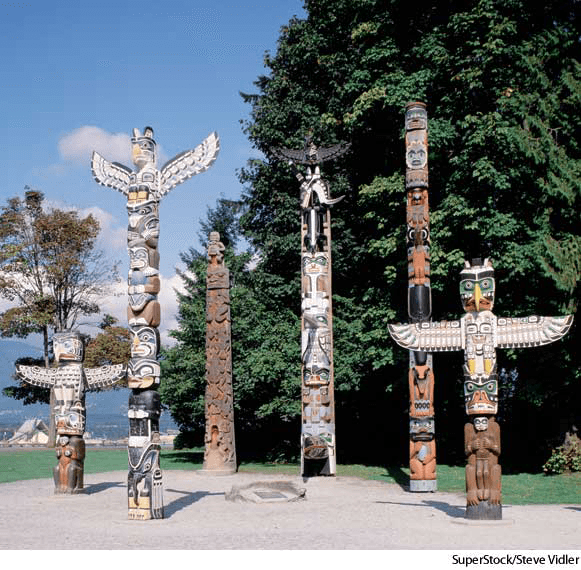 totem polen.(名词) totem poletotem poles (center) and house posts (far left and far right) at Stanley ParkVancouver, Canada- A post carved and painted with a series of totemic symbols and erected before a dwelling, as among certain Native American peoples of the northwest coast of North America.图腾柱:一种雕有或画有一系列图腾象征的柱子,竖立在住所前,如在北美洲西北海岸的某些印第安民族中的