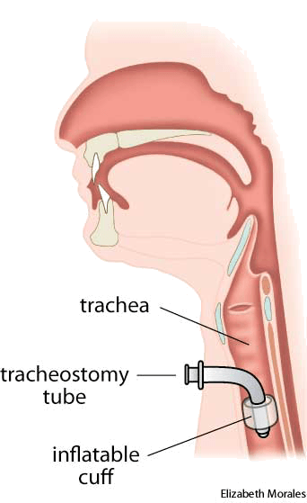 - A tracheotomy performed in order to insert a catheter or tube into the trachea, especially to facilitate breathing.为了将一导管或管道插入气管而施行的气管切开术,尤指为了促进呼吸