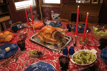 A traditional Thanksgiving dinner.