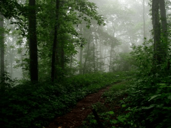 A trail through the forest.