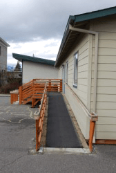 This wheelchair ramp is an adaptation to this house.