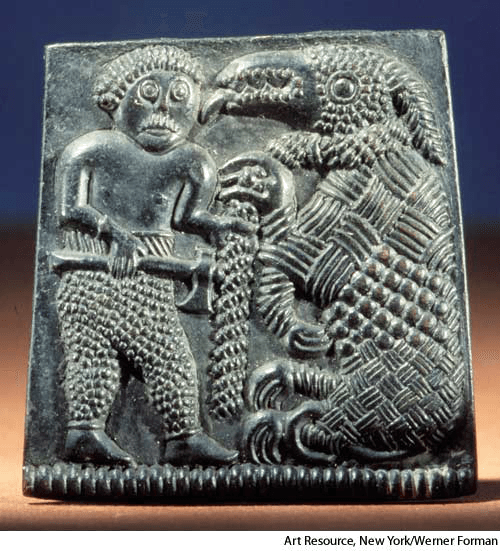 6th-century bronze relief depicting Tyr (left) and the monstrous wolf Fenrir (right)