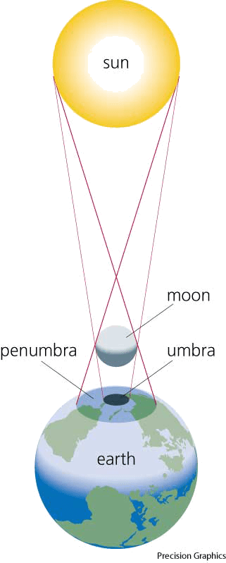 - The completely dark portion of the shadow cast by the earth, moon, or other body during an eclipse.本影:由地球、月亮或其他天体在蚀的过程中造成的阴影中完全黑暗的部分