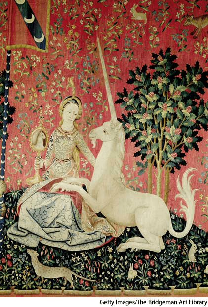 u·ni·corn AHD[yo͞o′nĭ-kôrn'] D.J.[ˈjuːnɪˌkɔːn]K.K.[ˈjunɪˌkɔrn]n.(名词) unicornThe Lady and the Unicorn: "Sight,"one in a series of six 15th-century tapestries- A fabled creature symbolic of virginity and usually represented as a horse with a single straight spiraled horn projecting from its forehead.独角兽,麒麟:一种虚构的代表童贞的动物,通常表示为一匹马,有直螺旋状的独角从它的额部突出