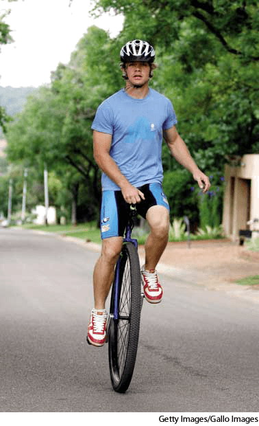 u·ni·cy·cle AHD[yo͞o′nĭ-sī'kəl] D.J.[ˈjuːnɪˌsaɪkəl]K.K.[ˈjunɪˌsaɪkəl]n.(名词) unicycleChristo Coetzer, the first person to circumnavigate Mauritius on a unicycle. - A vehicle consisting of a frame mounted over a single wheel and usually propelled by pedals.独轮脚踏车:一种由装有单轮的机架构成的车辆,通常由脚蹬推动