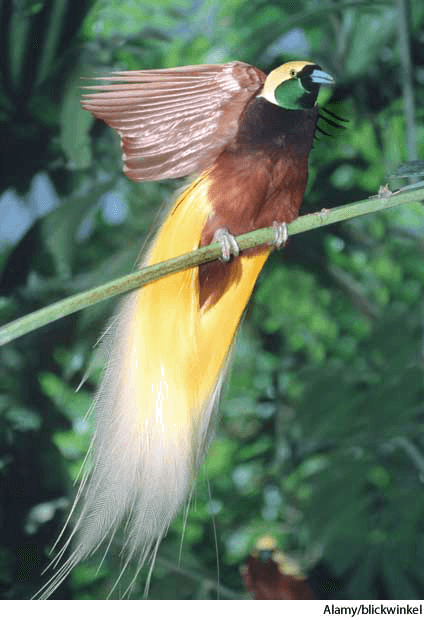 bird of paradisen.(名词)pl. birds of paradise 【复数】 top: male lesser bird of paradiseParadisaea minorbottom:flower ofStrelitzia reginae bird of paradise flowerPhotoDisc, Inc.- Any of various birds of the family Paradisaeidae, native to New Guinea and adjacent islands, usually having brilliant plumage and long tail feathers in the male.极乐鸟:一种极乐鸟科鸟类,生于新几内亚及邻近岛屿地区,雄鸟常有色彩鲜艳的羽毛和长尾羽毛