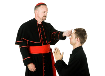 A bishop gives a blessing.