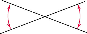 Either of two angles formed by two intersecting lines and lying on opposite sides of the point of intersection.