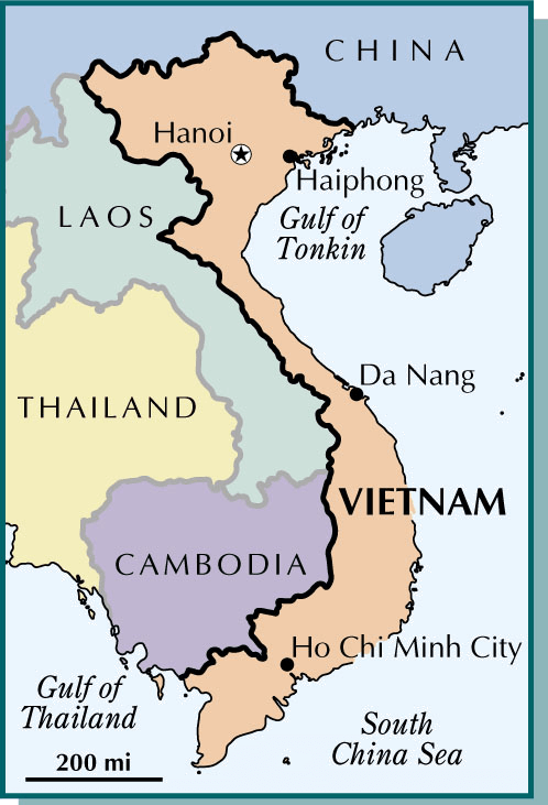 Viet·nam AHD[vē-ĕt'nämʹ, -nămʹ, vē'ĭt-, vyĕt'-] abbr.缩写 Viet.D.J.[viːˌetˈnɑːm, -ˈnæm, ˌviːɪt-, ˌvjet-]K.K.[viˌɛtˈnɑm, -ˈnæm, ˌviɪt-, ˌvjɛt-]NONE(无词性) - A country of southeast Asia in eastern Indochina on the South China Sea. Ruled by China from 221b.c. to a.d. 939 and from 1407 to 1428, it was occupied by the French in the 19th century. After the fall of the French garrison at Dien Bien Phu in 1954, it was partitioned into North Vietnam and South Vietnam. The country was reunited in July 1976 after the end of the Vietnam War. Hanoi is the capital and Ho Chi Minh City the largest city. Population, 52,741,766. 越南:亚洲东南的一个国家,位于南中国海岸的印度支那半岛东部。从公元前 221年到 公元 939之间和从1407年到1428年之间被中国统治,它在19世纪被法国占领。在1954年奠边府战役中法国驻军崩溃后,它被分割成 北越 和 南越 两部分。到1976年7月越南战争结束后这个国家才重新统一起来。河内是首都,胡志明是最大的城市。人口52,741,766