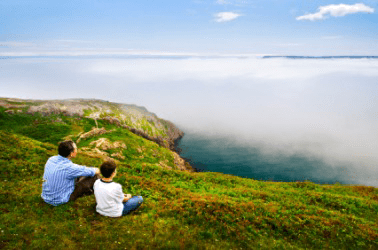 Father and son enjoy a beautiful vista.