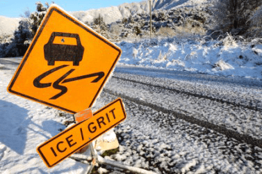 This sign warns of a slippery road.