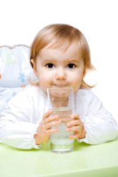 This baby is drinking wa-wa. (=water)