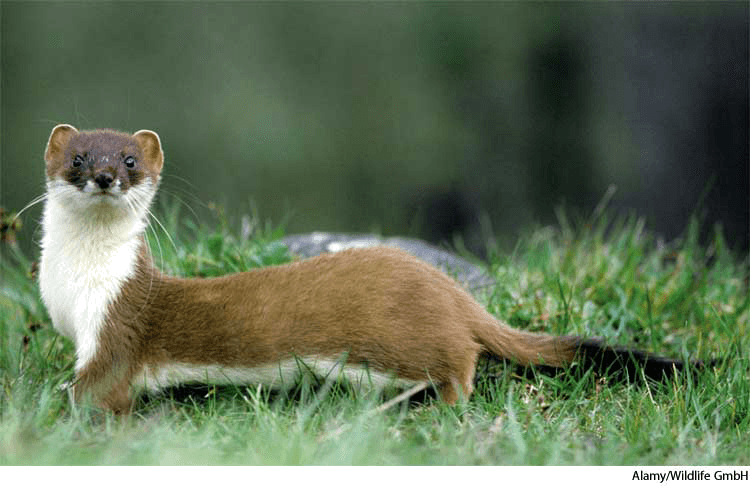 1. Any of various carnivorous mammals of the genusMustela, having a long slender body, a long tail, short legs, and brownish fur that in many species turns white in winter. 鼬,鼬类动物:多种鼬 属食肉哺乳动物之任一种,有细长的身体、长尾巴、短腿和棕色的皮毛,很多种类的鼬皮毛在冬天变成白色