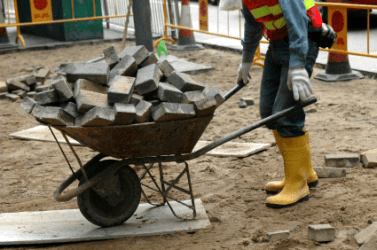 A wheelbarrow full of bricks.