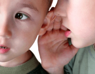 A child whispers in his friends ear.