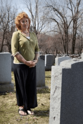 A widow visits her husbands grave.