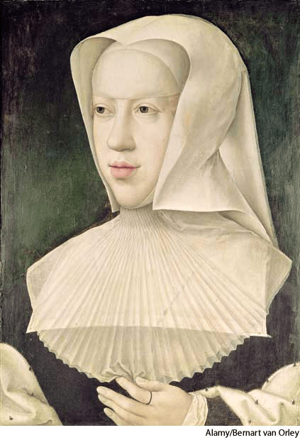wim·ple AHD[wĭmʹpəl] D.J.[ˈwɪmpəl]K.K.[ˈwɪmpəl]n.(名词) wimpleportrait of Margaret of Austria (1480-1530) by Bernard van Orley (1488-1551)- A cloth wound around the head, framing the face, and drawn into folds beneath the chin, worn by women in medieval times and as part of the habit of certain orders of nuns.头巾:围在头周围的一块布,勾勒出脸的形状,下巴下有褶,中世纪时妇女戴的或作为修女习惯装束的一部分
