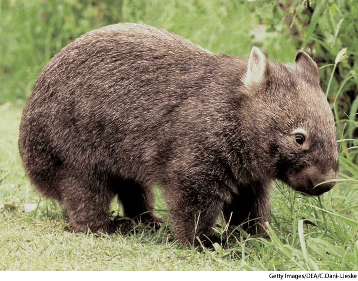wom·bat AHD[wŏmʹbăt'] D.J.[ˈwɒmˌbæt]K.K.[ˈwɑmˌbæt]n.(名词) wombatcommon wombatVombatus ursinus- Any of several stocky, burrowing, Australian marsupials of the family Vombatidae, somewhat resembling a small bear and feeding mainly on grass, leaves, and roots.袋熊:一种健壮结实的、穴居的、澳大利亚袋熊科有袋动物,有些像小狗熊,主要以草、树叶和植物的根为食