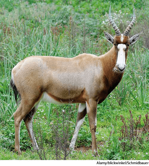 bles·bok AHD[blĕsʹbŏk'] D.J.[ˈblesˌbɒk]K.K.[ˈblɛsˌbɑk]n.(名词)【复数】 blesbok 或 bles.boks  blesbokDamaliscus pygargus subsp. phillipsi- A South African antelope(Damaliscus albifrons) having curved horns and a large white mark on its face. 南非白面大羚羊:南非一种羚羊(南非白脸大羚羊) ,有弯曲的角,脸部有大的白色标记