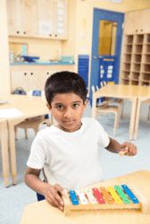 A child playing a xylophone.