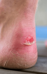 This person has a bad blister on their heel.