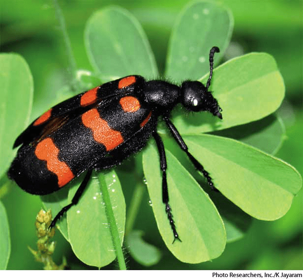 blister beetlen.(名词) blister beetleorange blister beetleMylabris pustulata- Any of various soft-bodied beetles of the family Meloidae, such as the cantharis, that secrete a substance capable of blistering the skin. Also called meloid 斑蝥,地胆:一种芜菁科软体甲虫,如斑蝥,能分泌一种使皮肤起疱的物质 也作 meloid