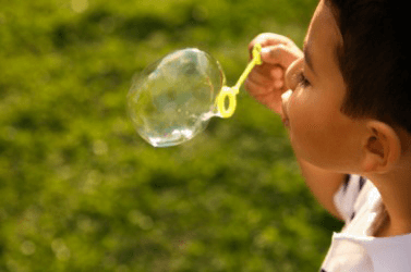 A child blowing a bubble.
