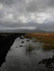 A bog under a stormy sky.