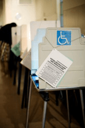 A row of voting booths.