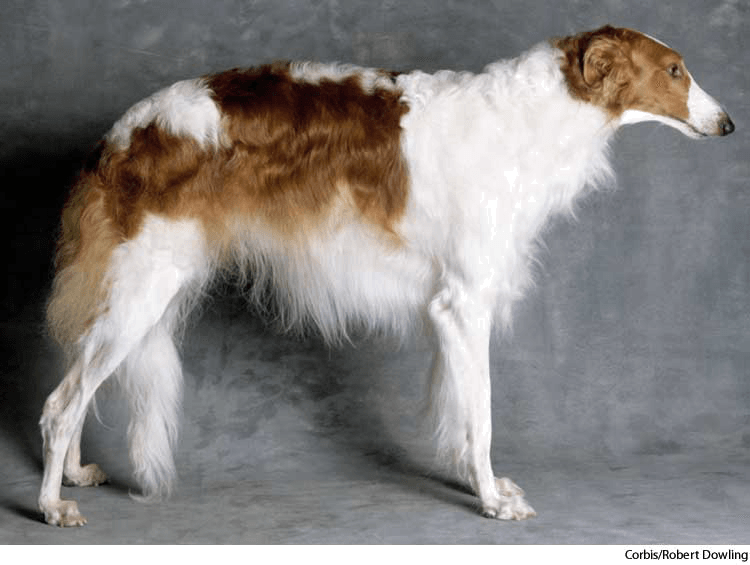 bor·zoi AHD[bôrʹzoi'] D.J.[ˈbɔːˌzɔɪ]K.K.[ˈbɔrˌzɔɪ]n.(名词) borzoi- Any of a breed of tall, slender dogs having a narrow, pointed head and a silky, predominantly white coat, originally developed in Russia for hunting wolves. Also called Russian wolfhound 波佐狗:一种具有窄而尖的头及柔滑的,大多为白色毛皮的一种高大而细长的狗,原产于俄国,用来猎捕狼 也作 Russian wolfhound