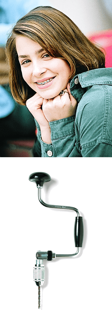- A cranklike handle with an adjustable aperture at one end for securing and turning a bit.手摇曲柄:一种在一端带有可调节的孔以抓住和转动钻头的曲柄状把手